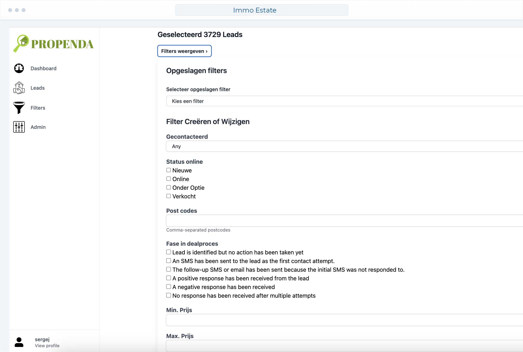 Stel filters in op prijs, online status, postcode en meer om alleen relevante leads te vinden.